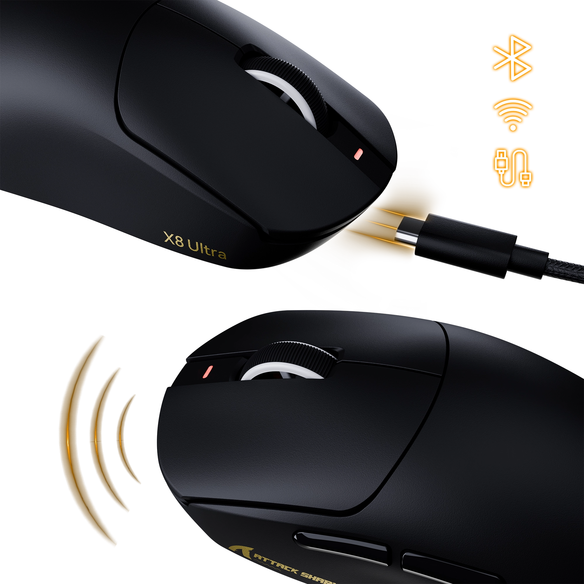 Jogue do seu jeito — alterne instantaneamente entre os modos com fio, sem fio de 2,4 GHz e Bluetooth. O X8Ultra mantém você conectado com desempenho ultraestável, seja em sua mesa ou em movimento.