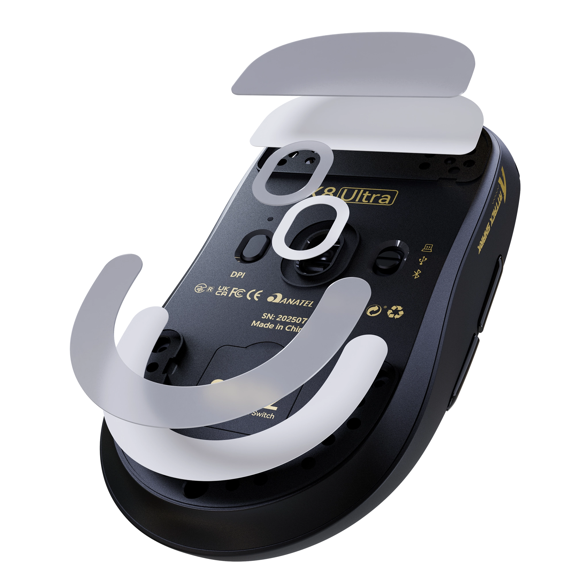 Desenvolvidos para precisão, os pés de PTFE de camada dupla do X8Ultra garantem movimentos consistentes e sem esforço, proporcionando a exatidão e a resposta exigidas em jogos competitivos.